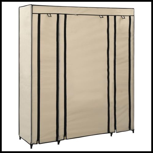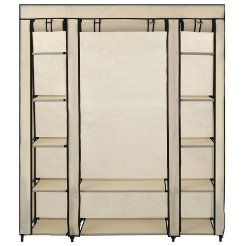 vidaXL Portable Wardrobe 150x45x176 cm with Compartments and Rods Cream Fabric for Space-Saving Clothing Storage - cream