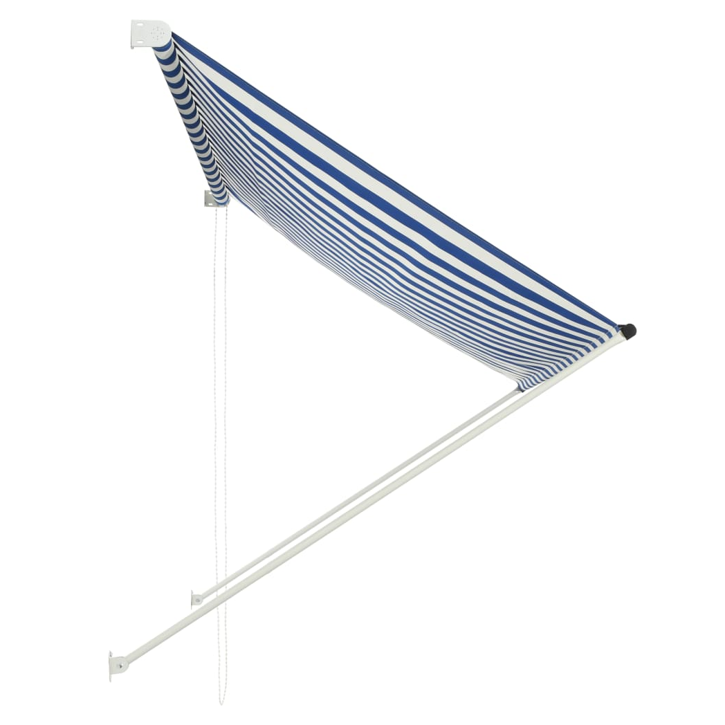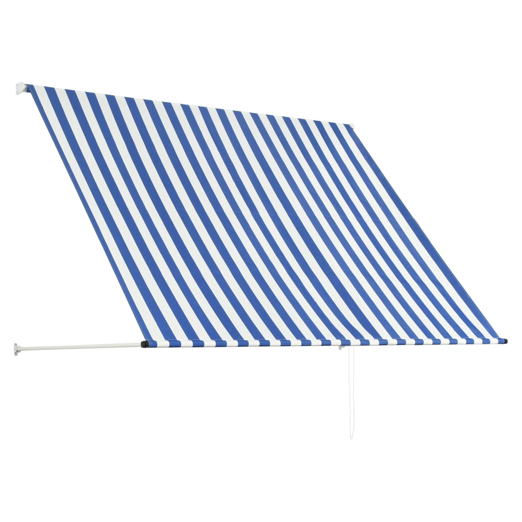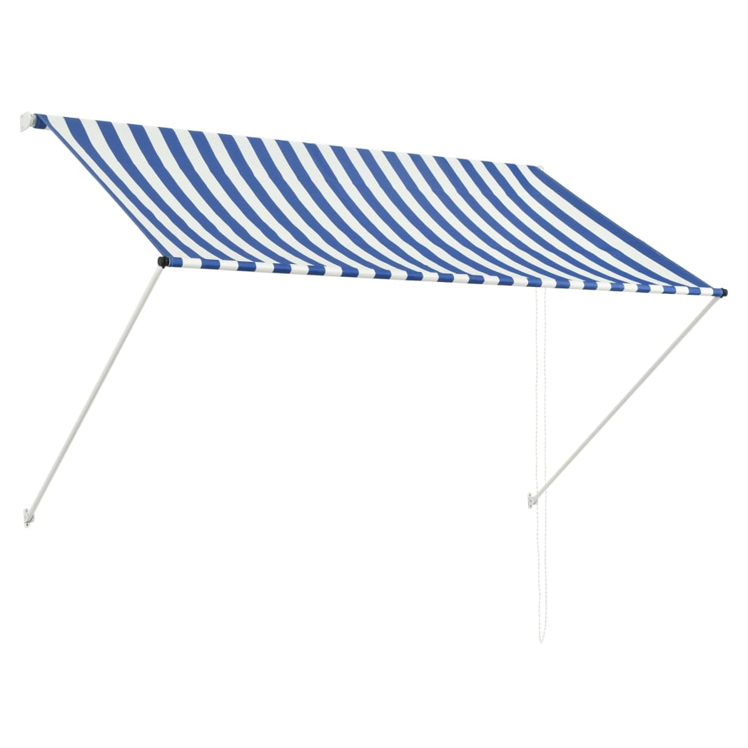VidaXL Retractable Awning 100x150 cm Blue White PA-Coated Fabric UV-Resistant for Patio - blue / 250 x 150 cm