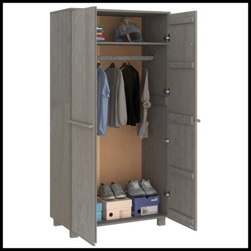 vidaXL Solid Pine Wood Wardrobe 89x50x180 cm Honey Brown with Hanging Rod for Organized Clothing Storage - brown