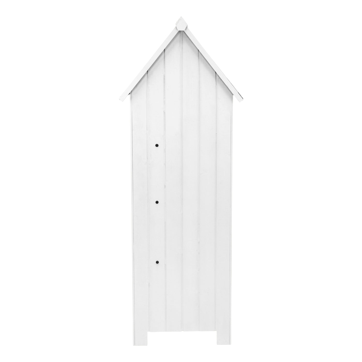 Premium Wooden Garden Shed White Standard Size With Three Shelves For Tool Storage Outdoor Use
